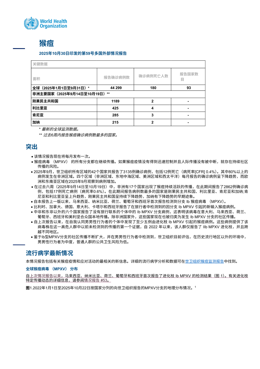 猴痘多国疫情,外部情况报告 #59(2025-10-30)