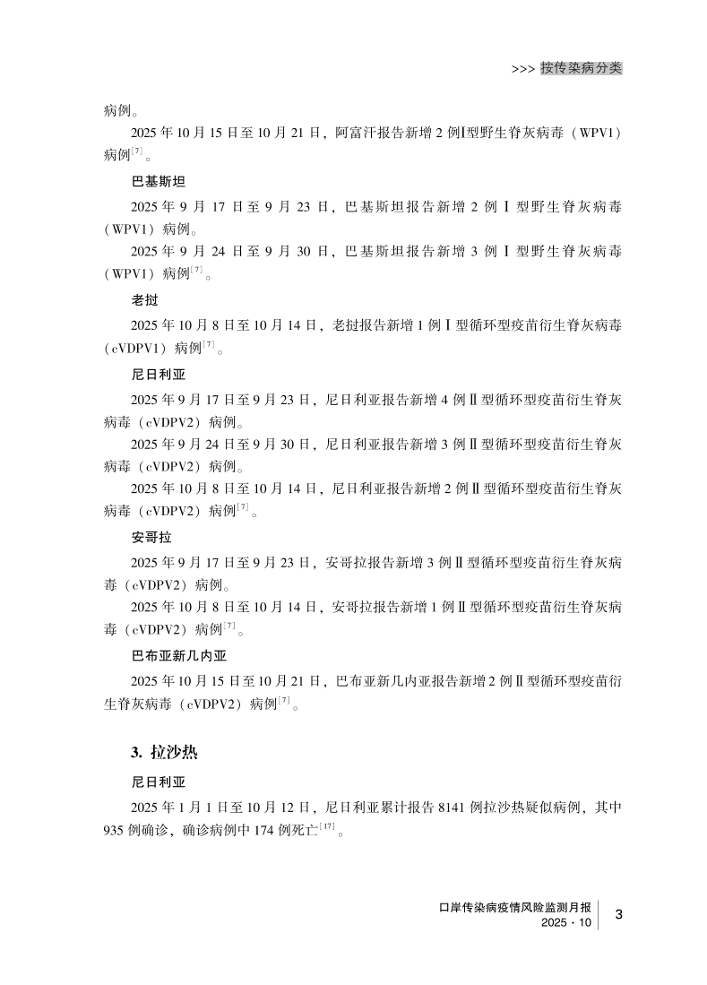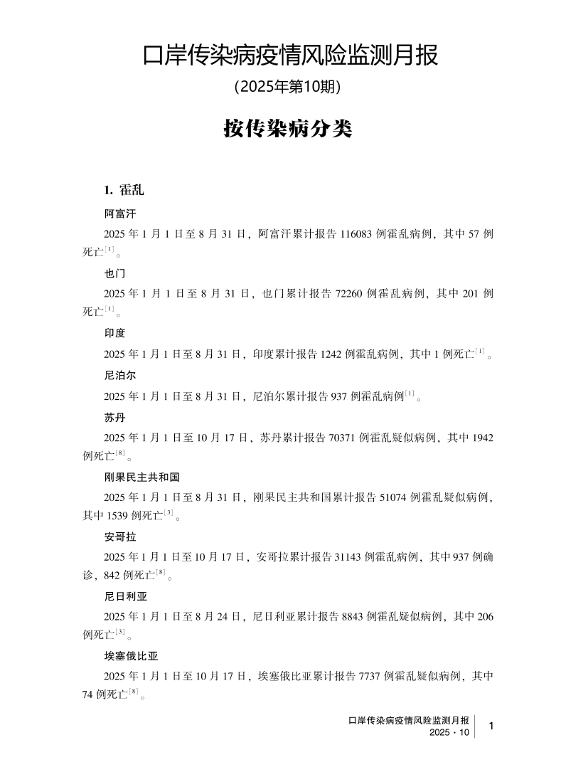 2025年口岸传染病疫情风险监测月报(10月)