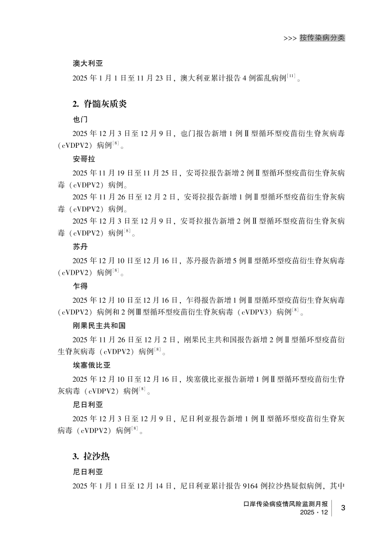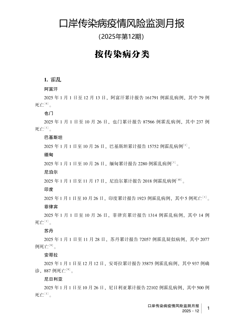 2025年口岸传染病疫情风险监测月报(12月)