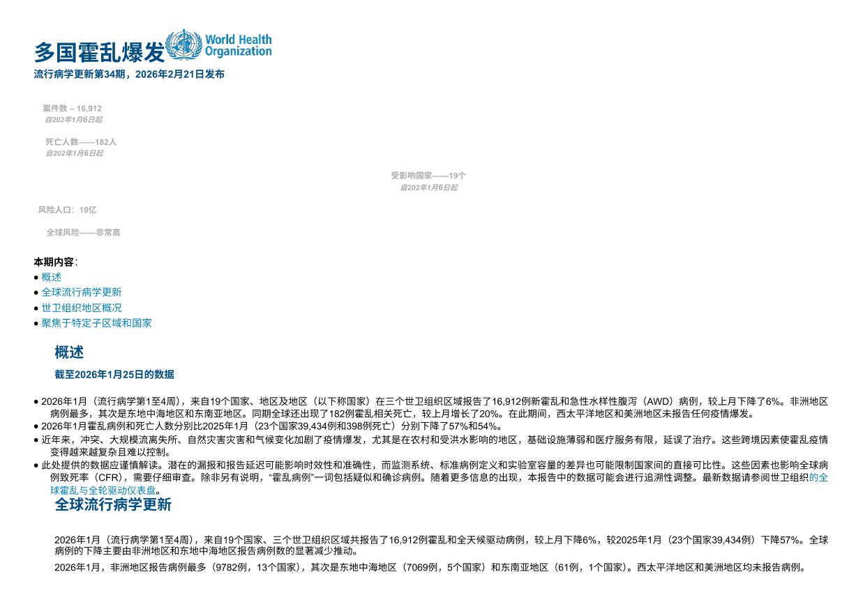 多国霍乱爆发,流行病学更新 #34(2026-02-21)