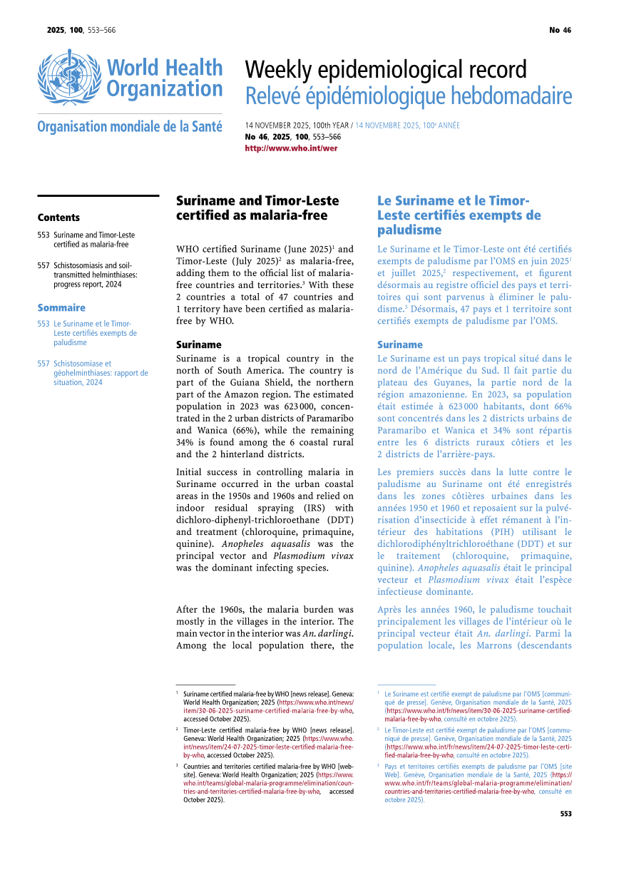 世界卫生组织流行病学周报(2025-11-14)