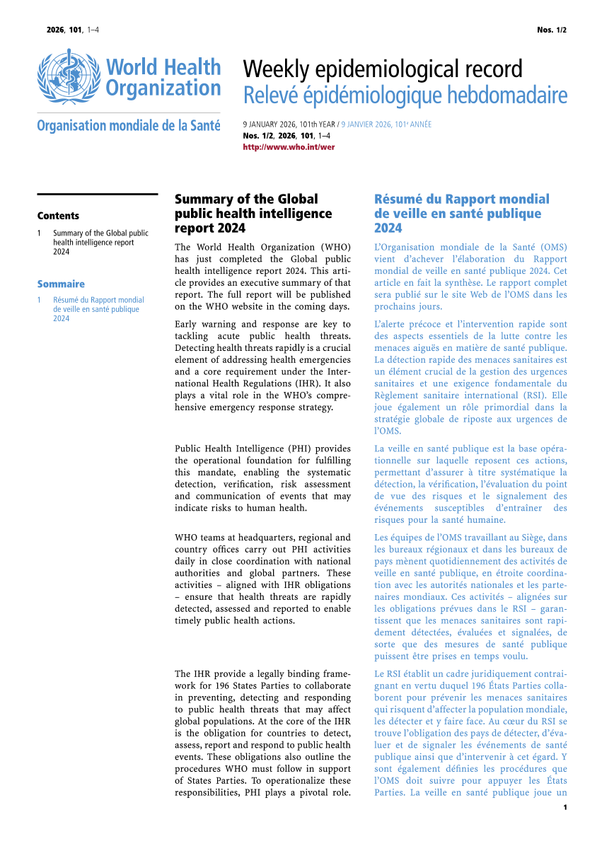 世界卫生组织流行病学周报(2026-01-09)