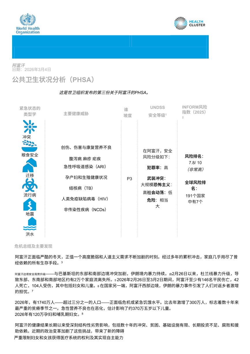 阿富汗公共卫生形势分析(2026-03-12)