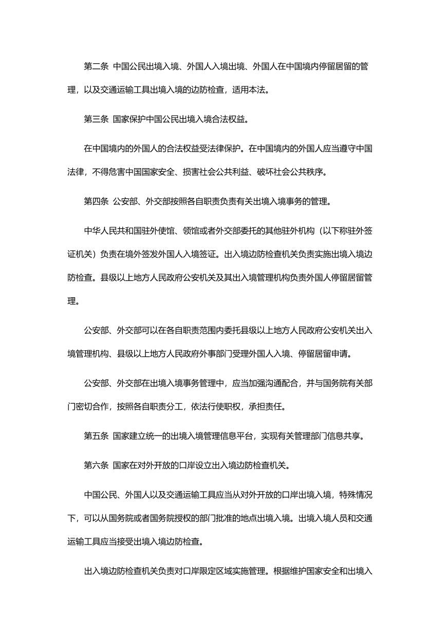 中华人民共和国出境入境管理法(中英文)
