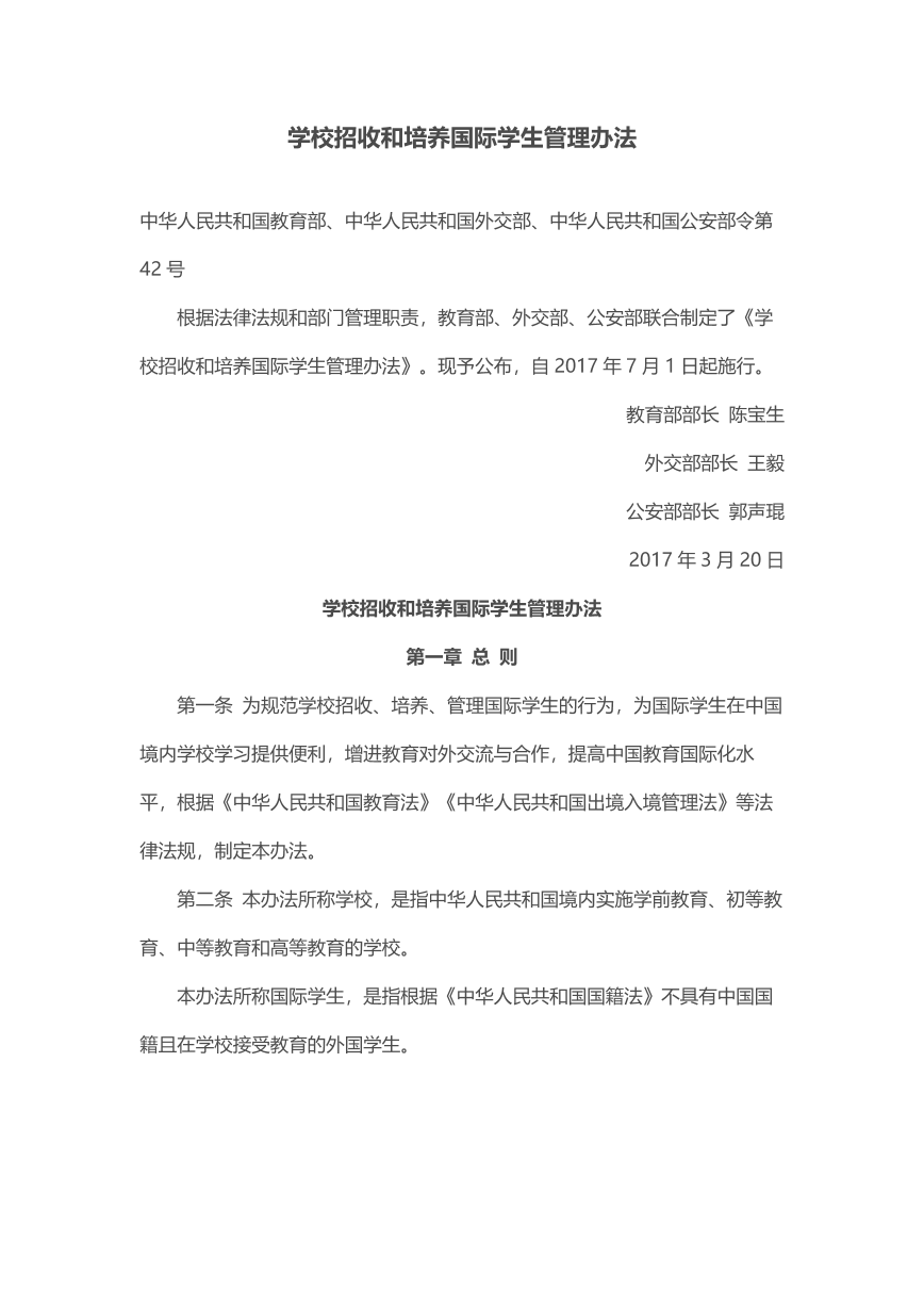 学校招收和培养国际学生管理办法