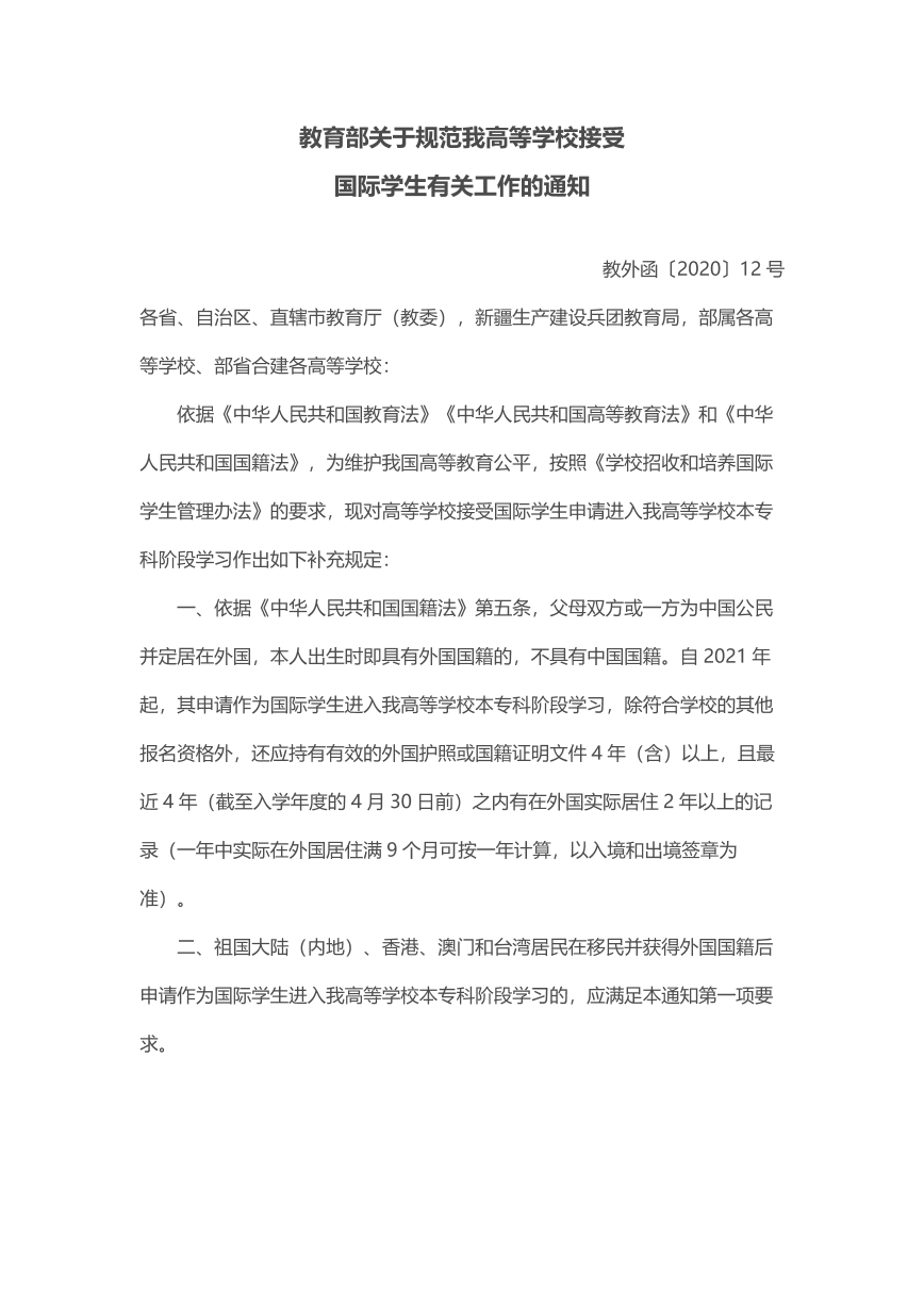 教育部关于规范我高等学校接受国际学生有关工作的通知