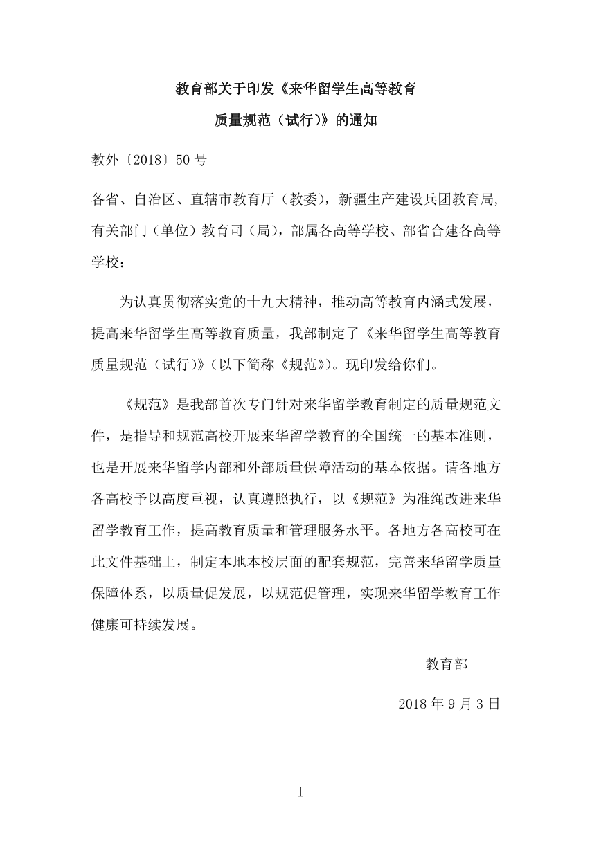 来华留学生高等教育质量规范(试行)