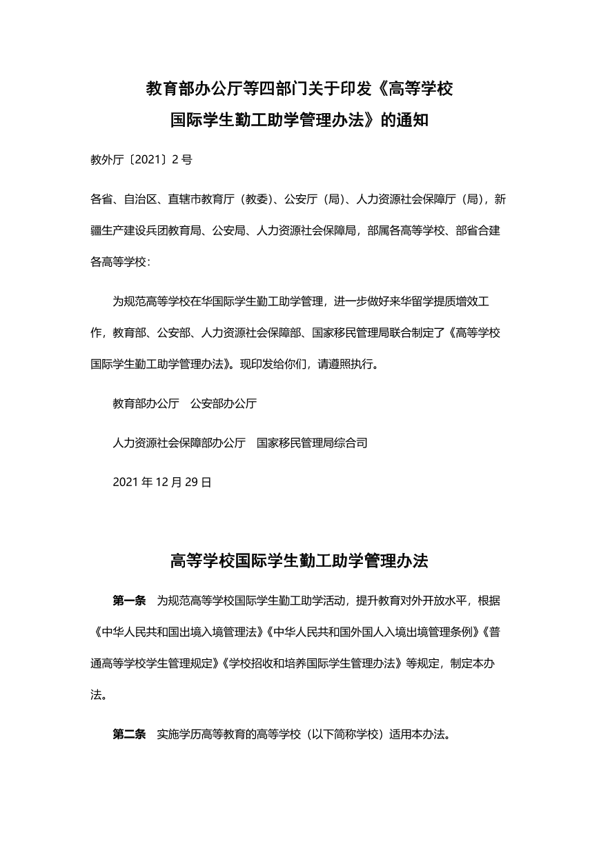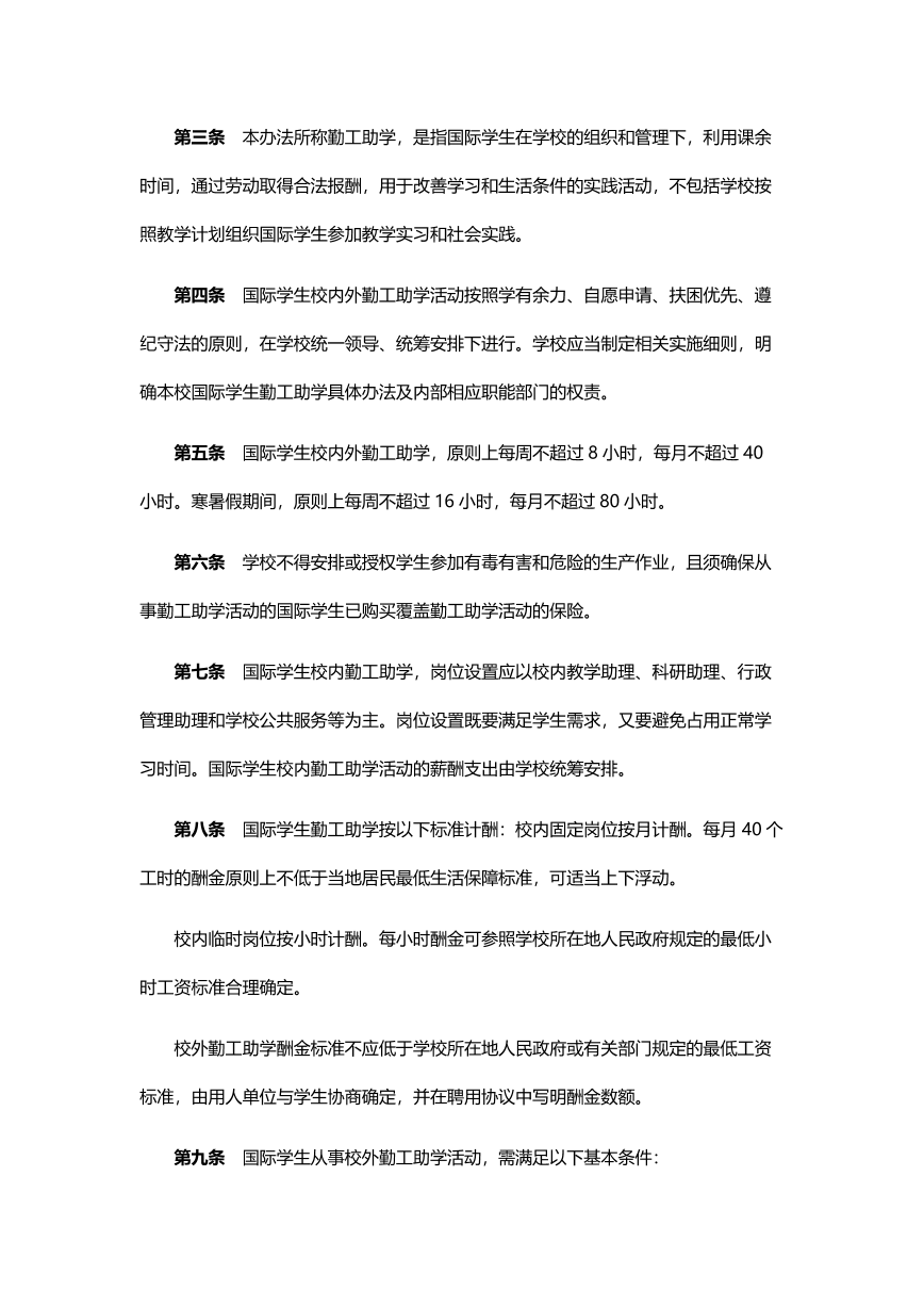 高等学校国际学生勤工助学管理办法