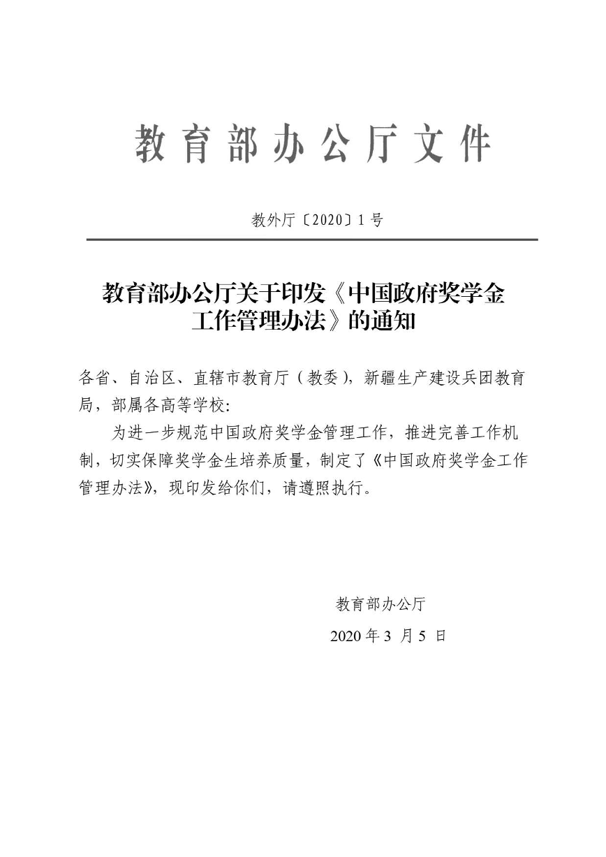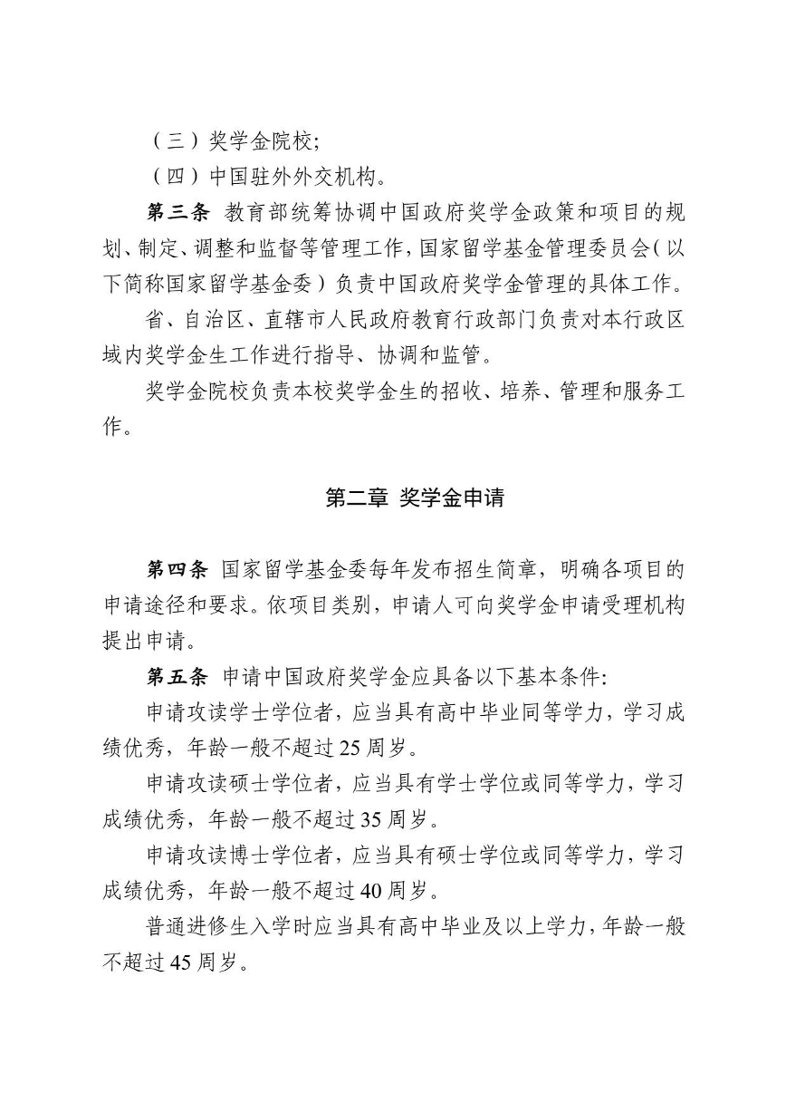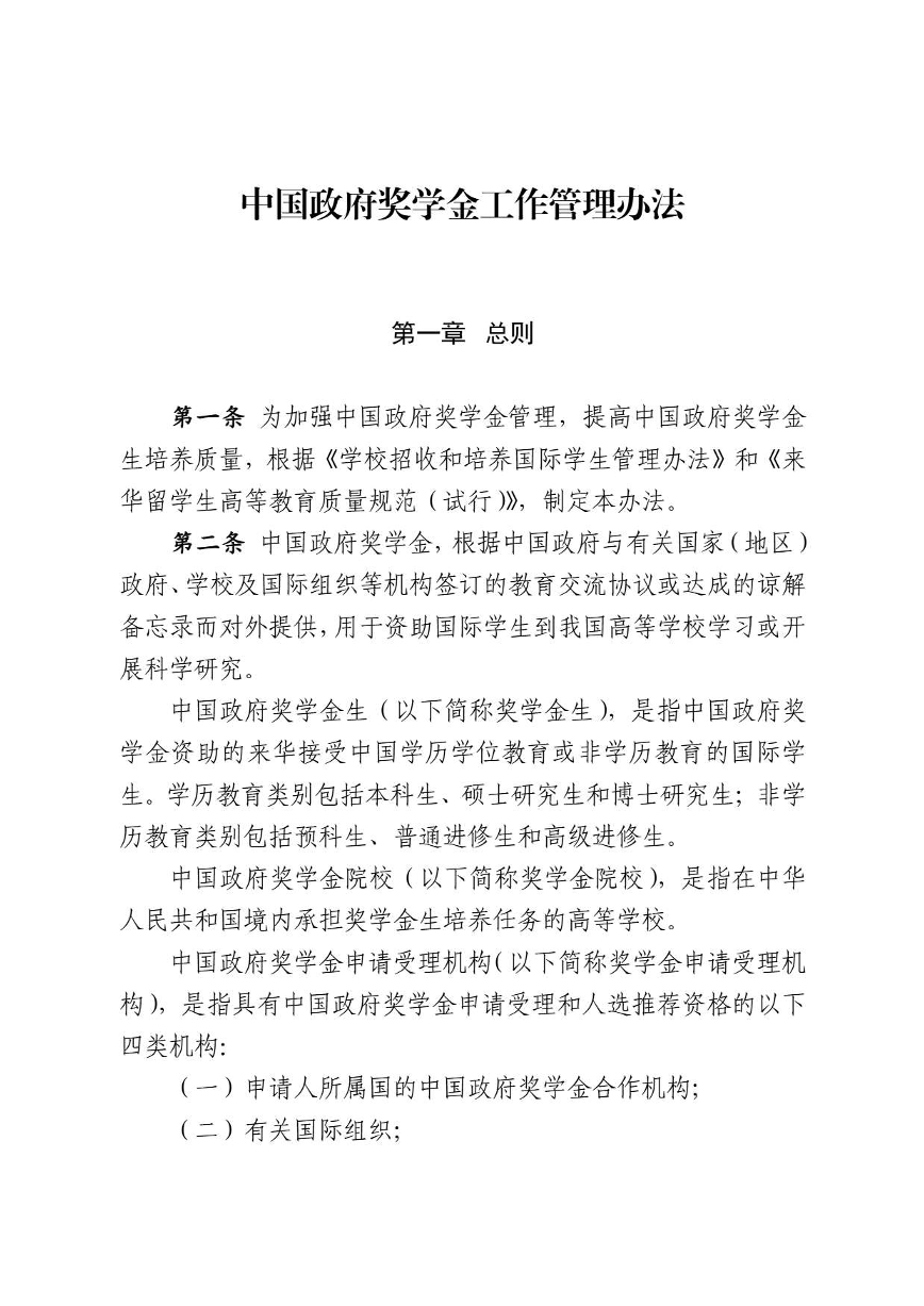 中国政府奖学金工作管理办法